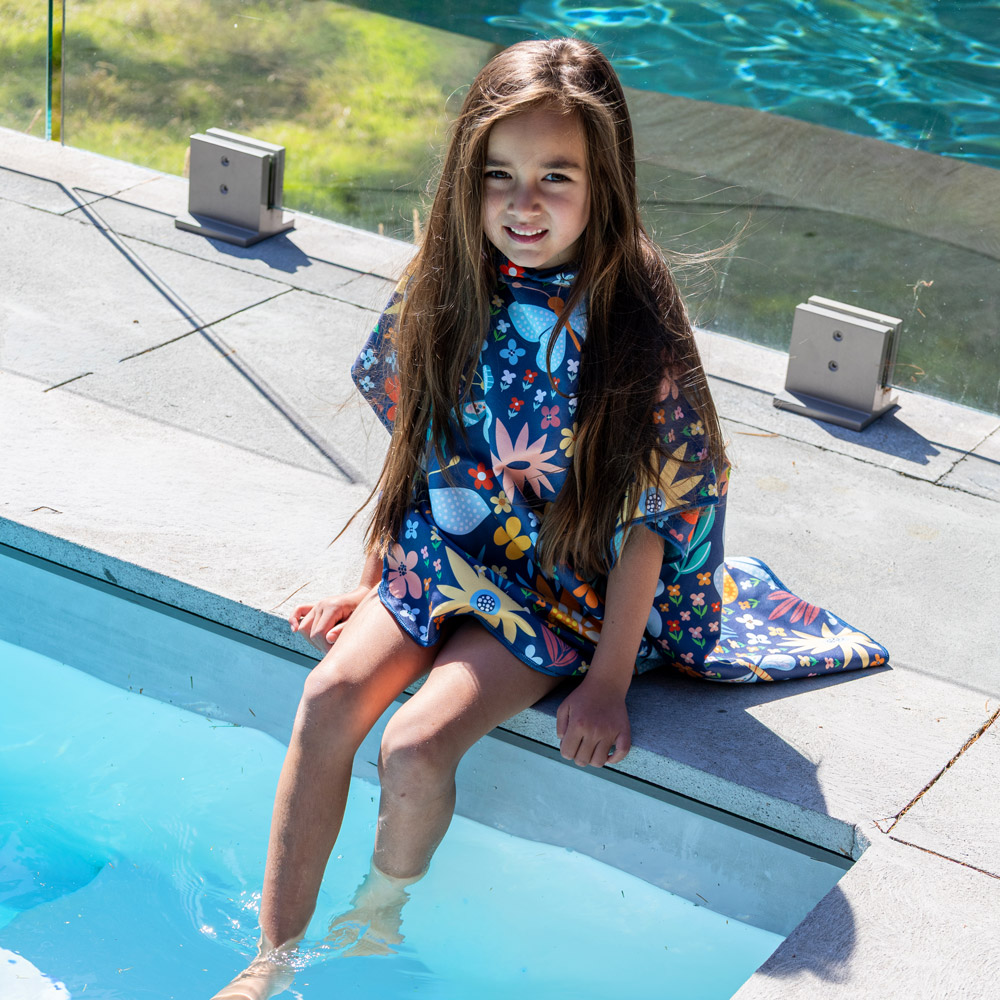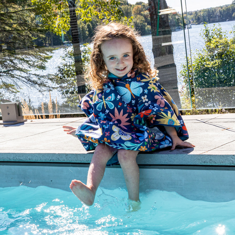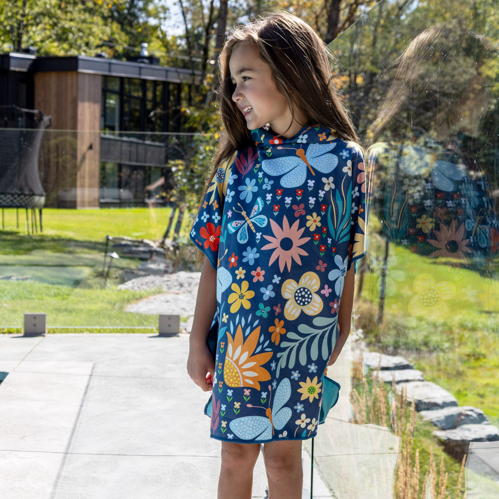 The 2-in-1 kid microfiber poncho, combining both towel and poncho functions, is a great solution for days at the pool, at the beach or even after a bath.