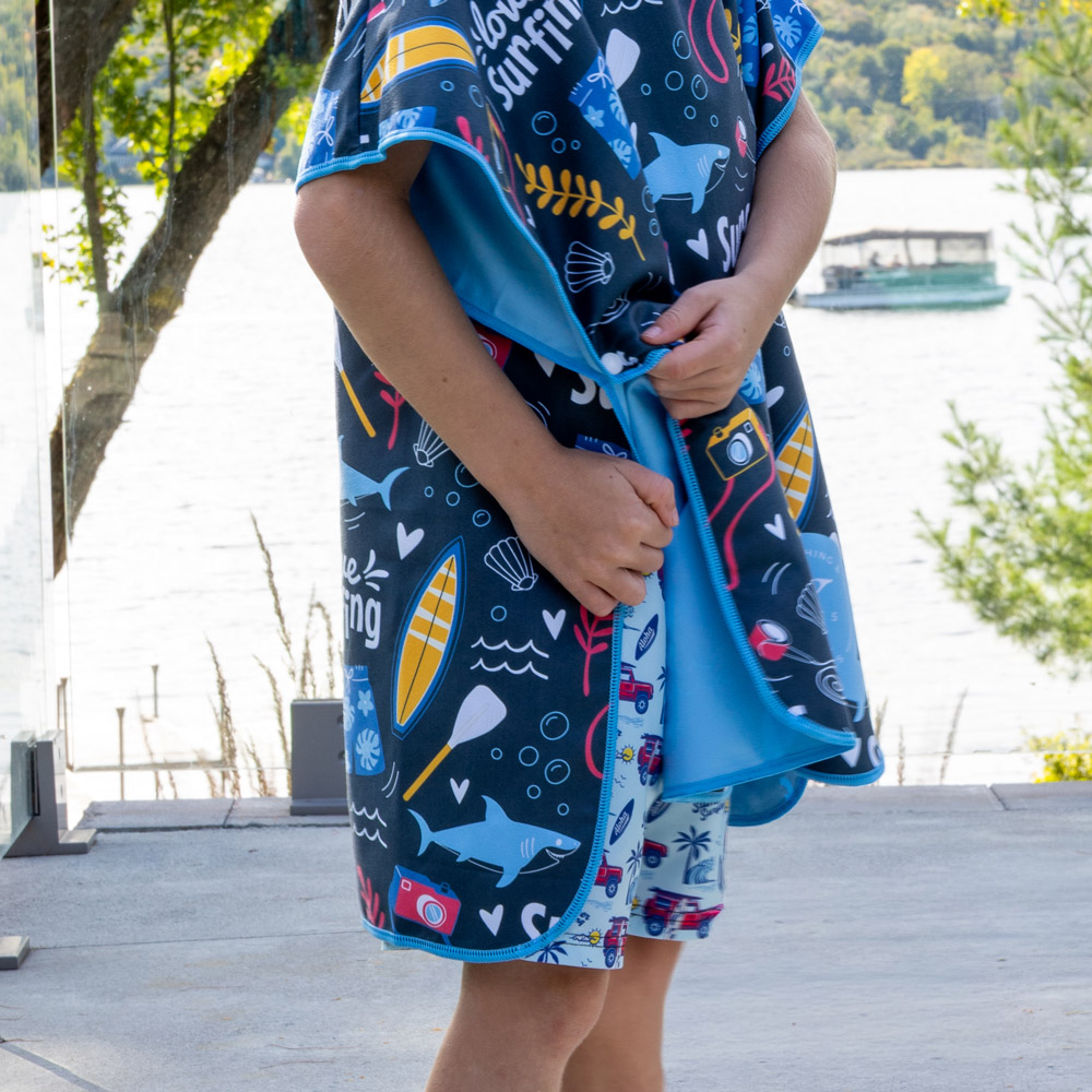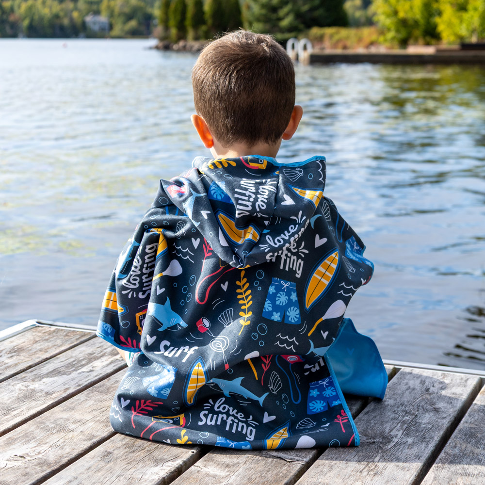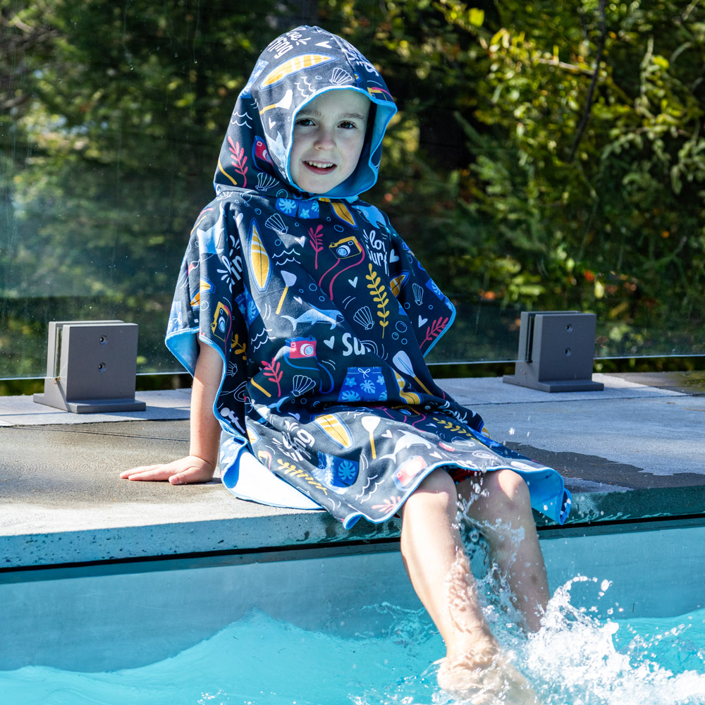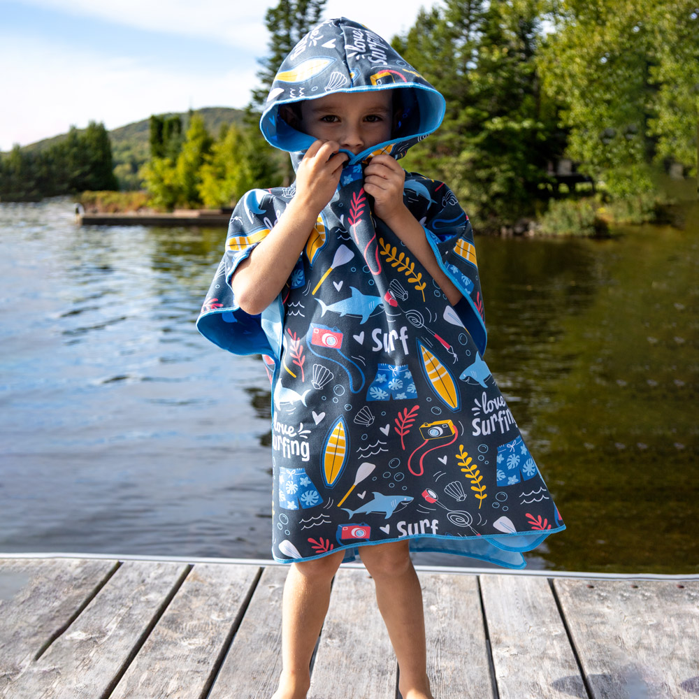 The 2-in-1 kid microfiber poncho, combining both towel and poncho functions, is a great solution for days at the pool, at the beach or even after a bath.