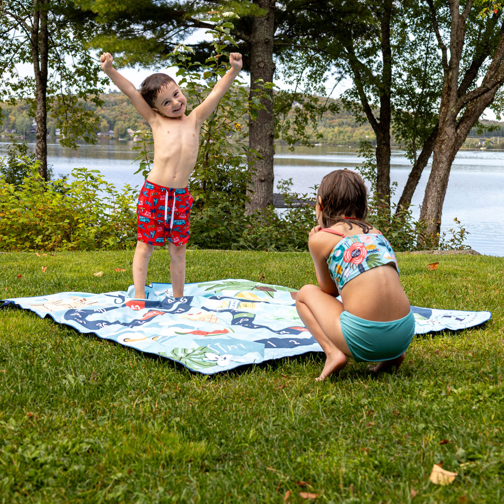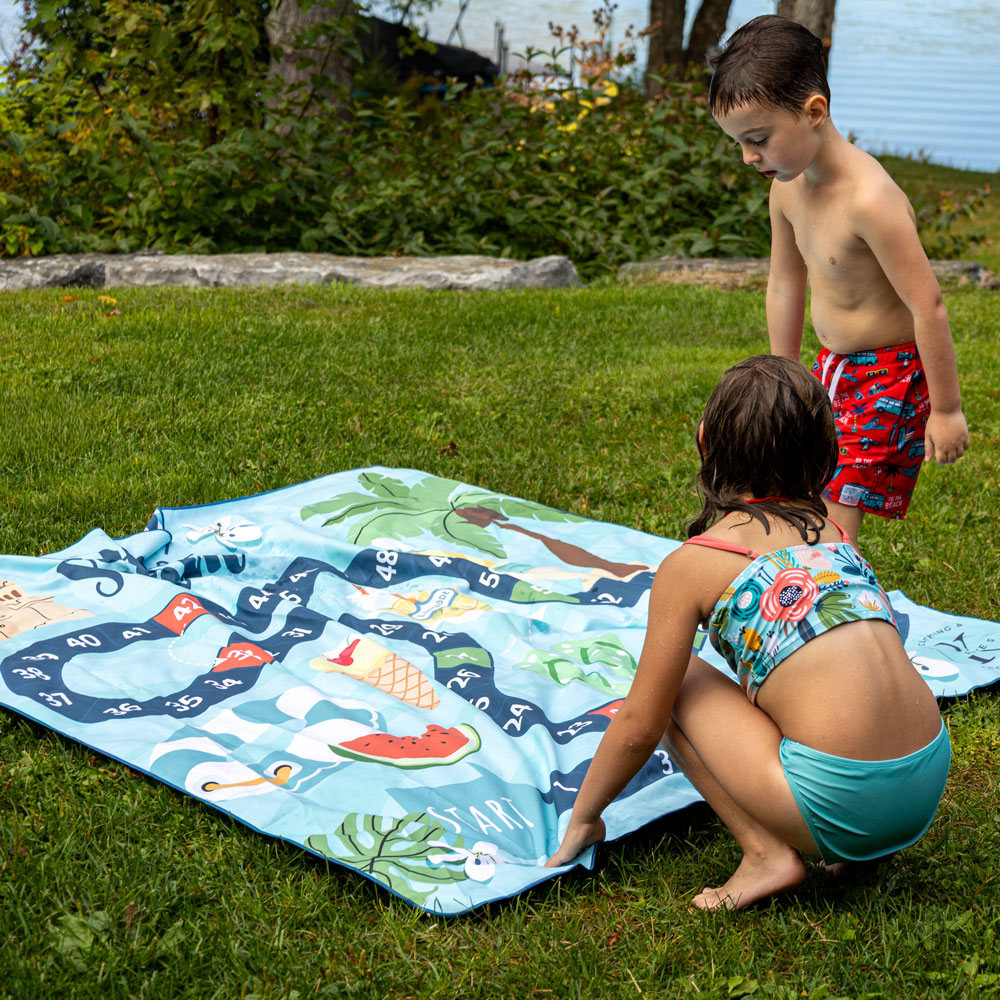 The XXL microfiber towel is ideal for a family outing, especially if you are looking for a lightweight, absorbent, compact and easy to carry accessory.