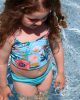 This 2-piece swimsuit with original patterns will charm you with its soft fabrics like clouds. Its adjustable straps for a perfect fit. Comfort will be there for all your moments this summer or for your swimming lessons.